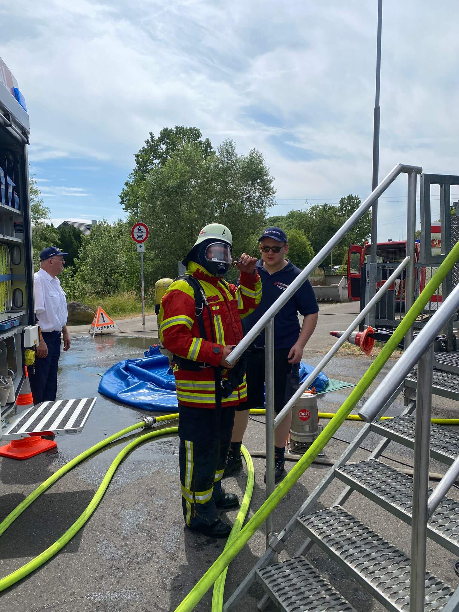 Ein weiteres Highlight des Tages war die Vorführung am Brandcontainer. Trotz der drückenden Hitze zeigten die mutigen Feuerwehrleute ihr Können und demonstrierten den Besuchern, wie sie in herausfordernden Brandsszenarien Leben retten und Brände effektiv bekämpfen. Der Brandcontainer simulierte realistische Feuerszenarien und bot den Feuerwehrleuten die Möglichkeit, ihre Fähigkeiten und Techniken zu präsentieren.