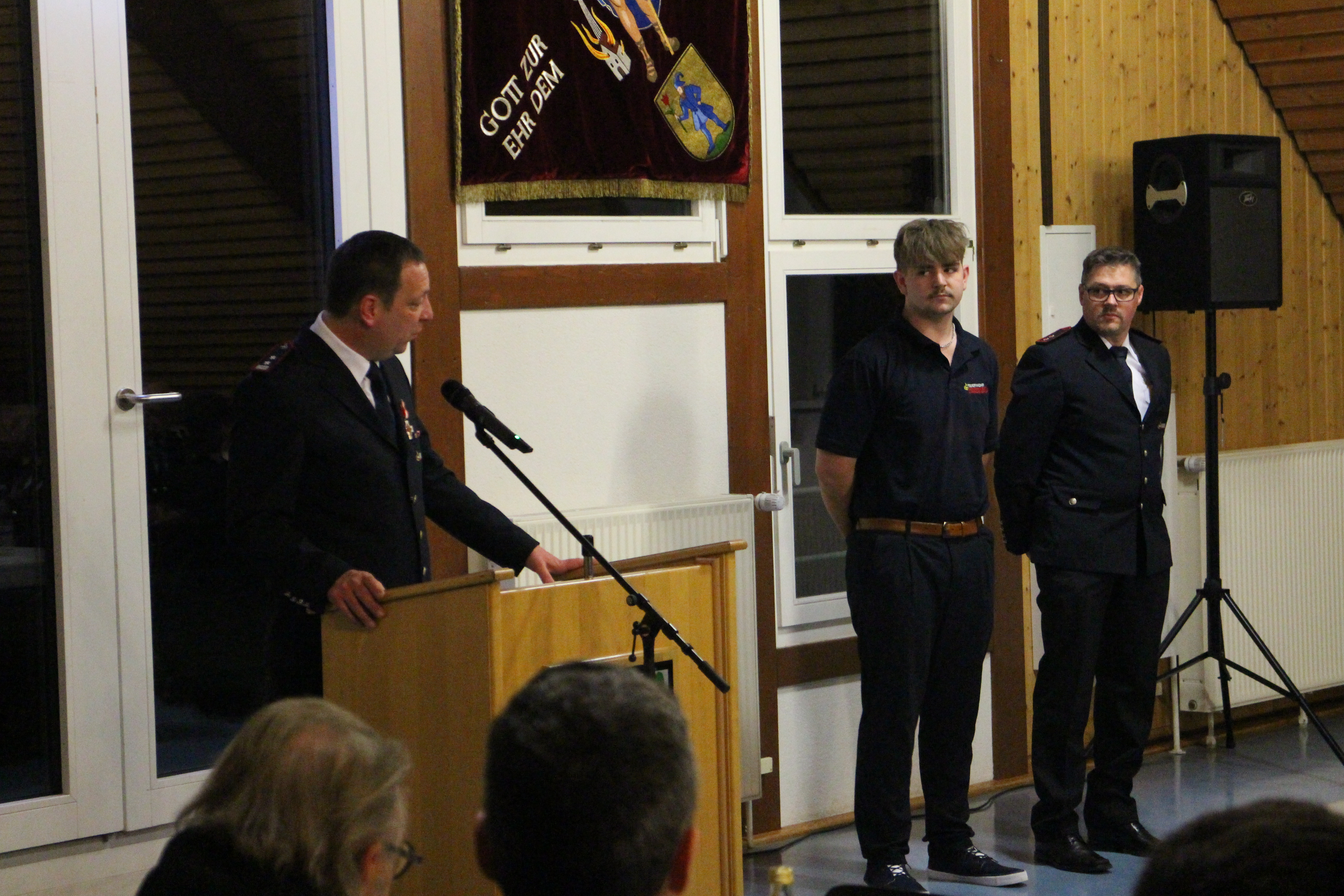 Zwei neue Kameraden, Stefan Drach und Ben Schäfer, wurden offiziell in die aktive Wehr aufgenommen.
