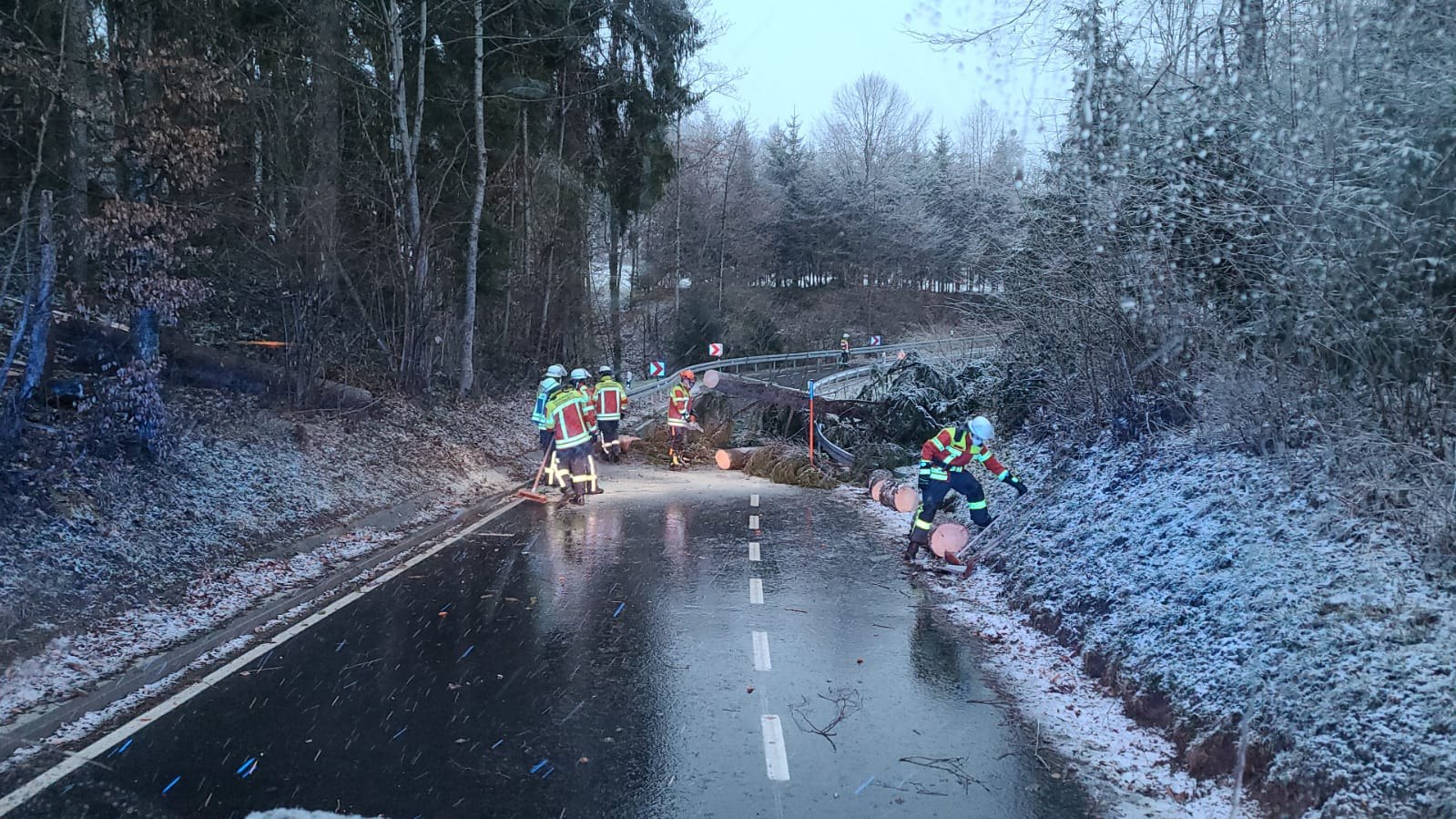 Zunächst mussten wir einen Baum bei Wippertsweile von der Straße entfernen.