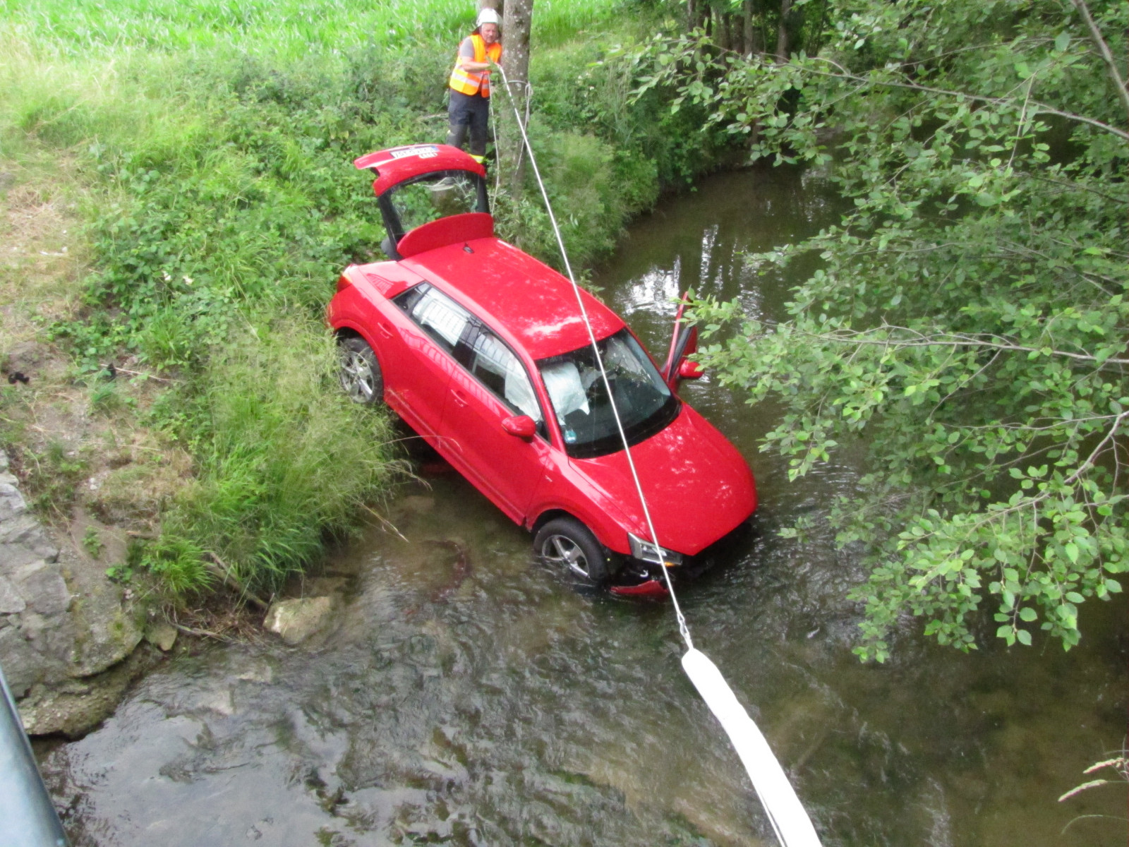Die Freiwillige Feuerwehr Deggenhausertal wurde zu einem PKW in der Rotach bei Urnau alarmiert.