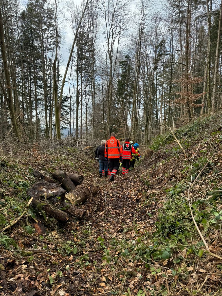 Da der genaue Unfallort unbekannt war, musste erst nach dem Verletzten gesucht werden. Nach dem Auffinden unterstütze die Freiwillige Feuerwehr Deggenhausertal den Rettungsdienst, welcher mit einem RTW sowie einem NEF vor Ort war, bei der Betreuung und dem Transport des Verletzten. Der Patient wurde mit Hilfe der Schleifkorbtrage aus dem Gelände getragen.