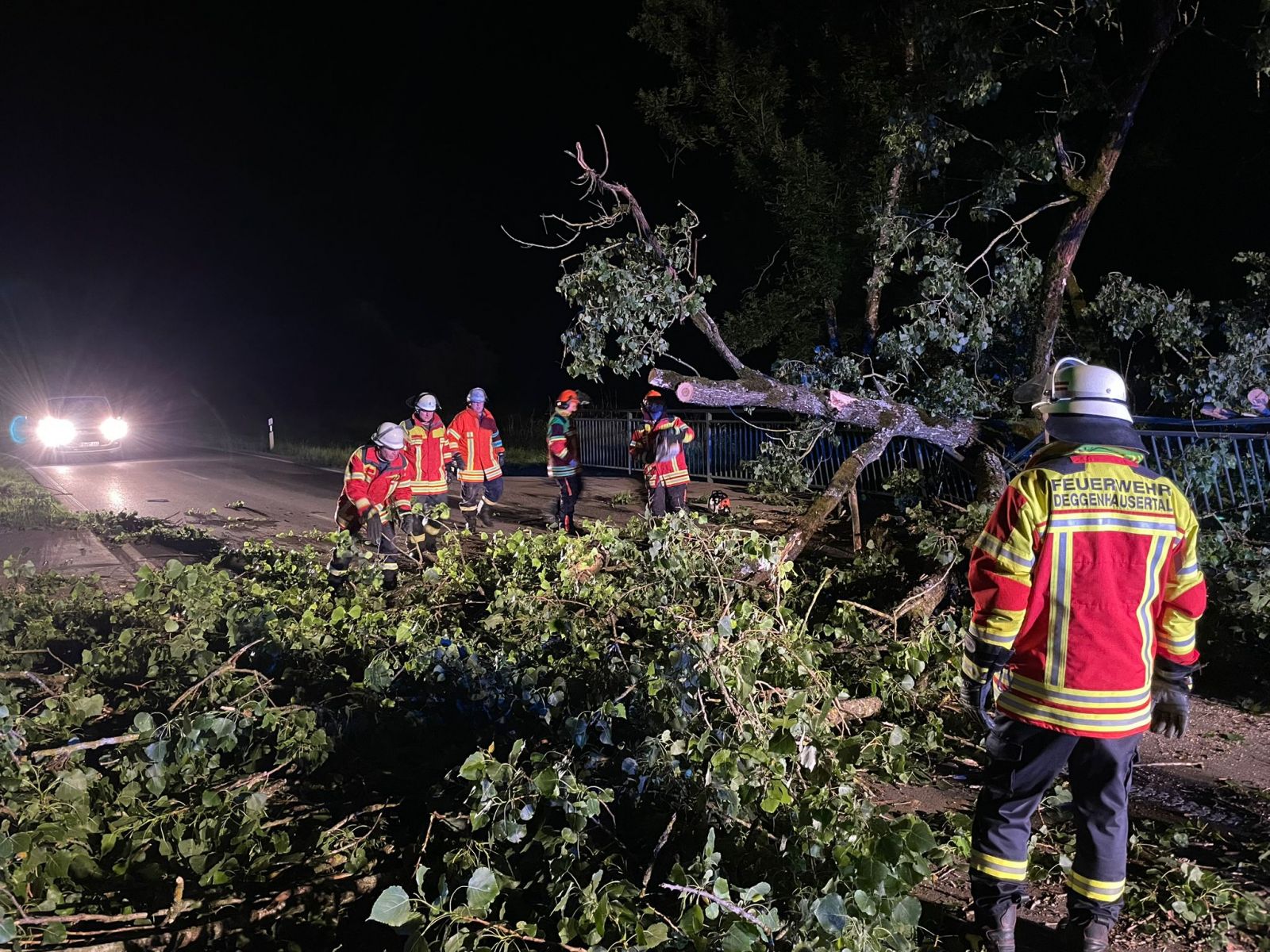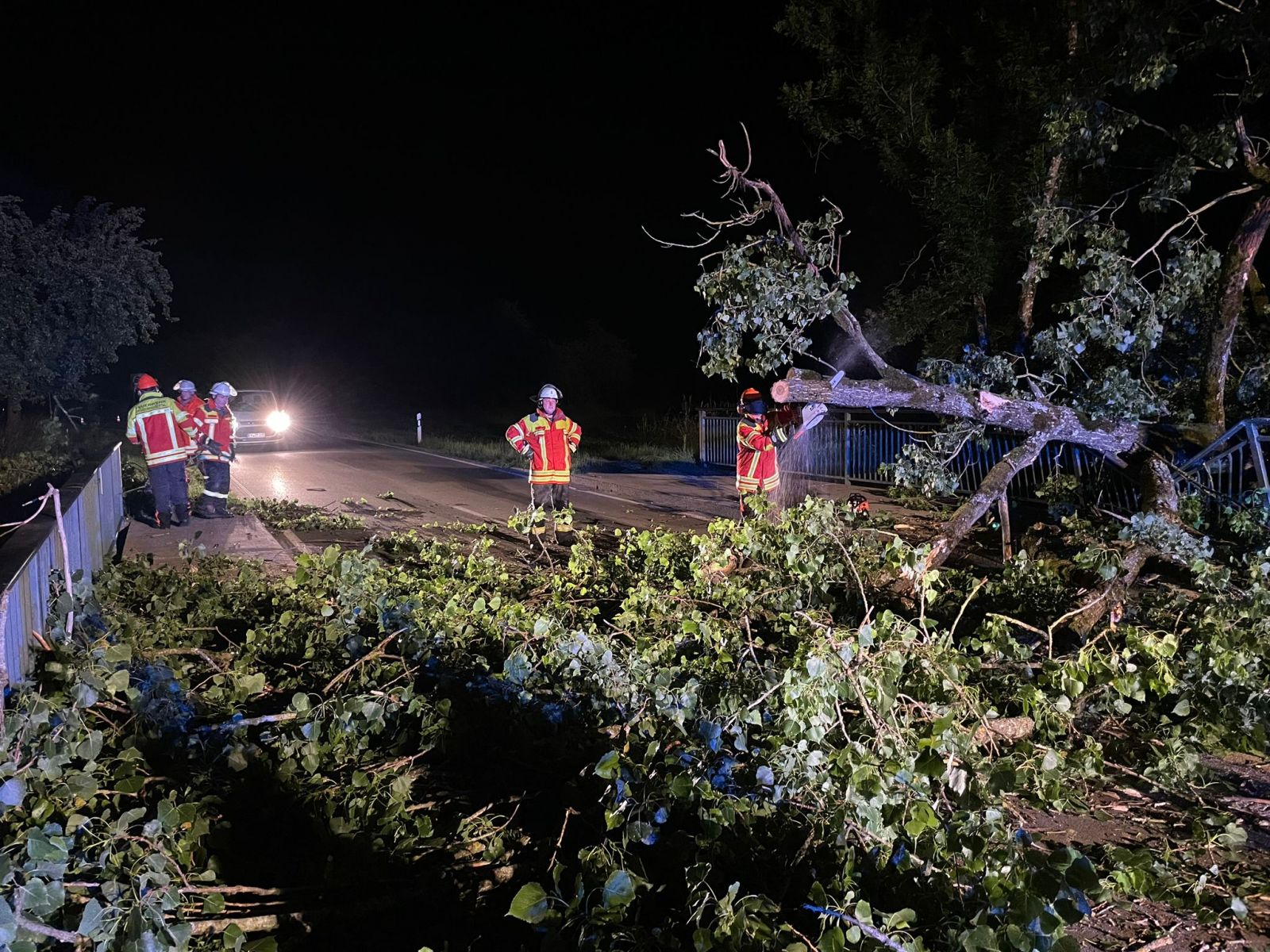 Am Einsatzort musste ein großer Baum, der im Bereich der Abzweigung Schönemühle auf ein Brückengeländer gefallen war, von der L204 entfernt werden. Auch eine Streife des Polizeireviers Überlingen war vor Ort, um die Situation zu sichern.