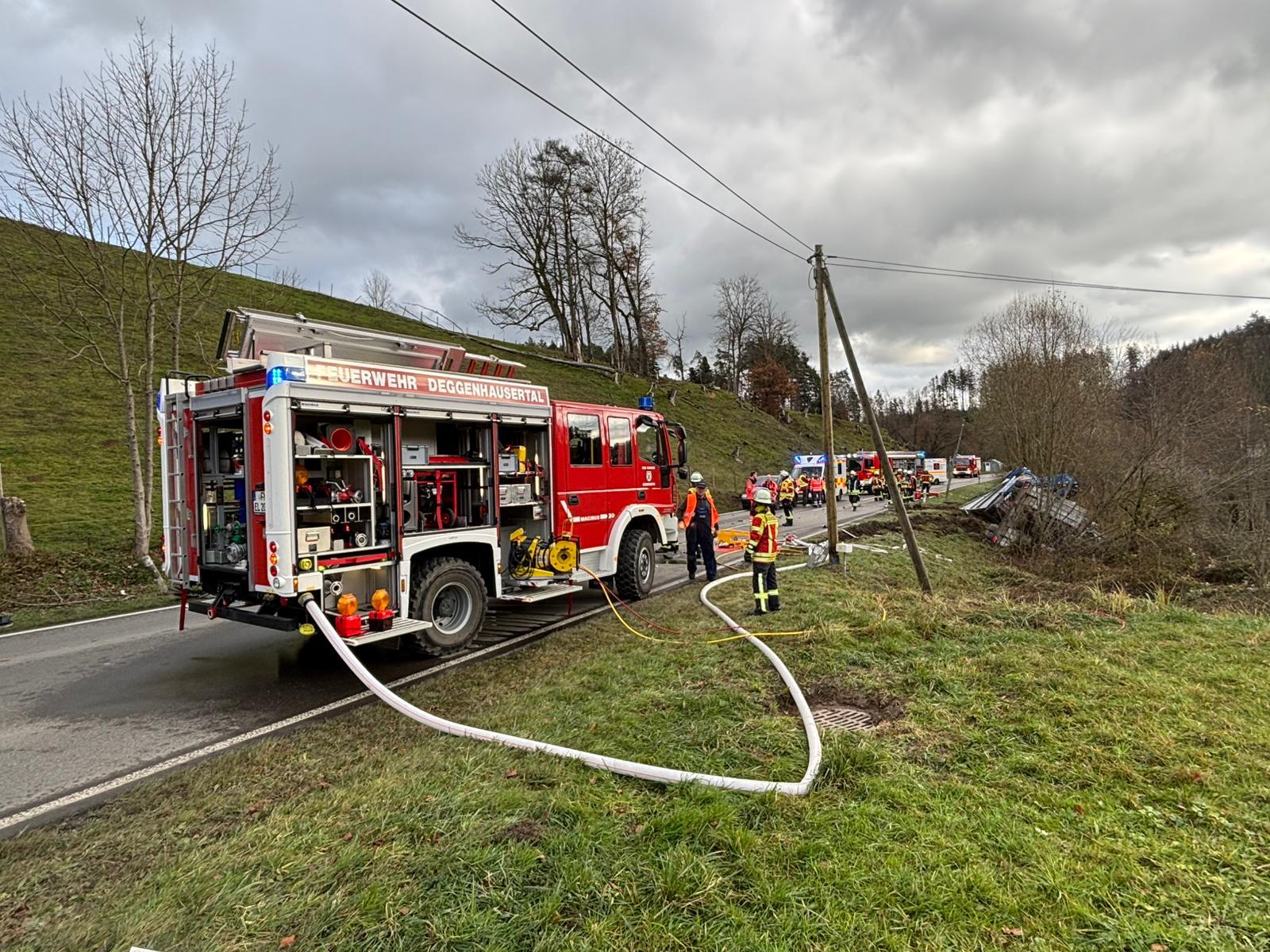 Am Dienstagvormittag gegen 11:47 Uhr wurde die Freiwillige Feuerwehr Deggenhausertal zu einem schweren Verkehrsunfall auf der L204 zwischen Fuchstobel und Urnau alarmiert. Ein Pkw war dort mit einem entgegenkommenden Lastwagengespann kollidiert. Durch den Aufprall wurde der Pkw-Fahrer in seinem Fahrzeug eingeklemmt.