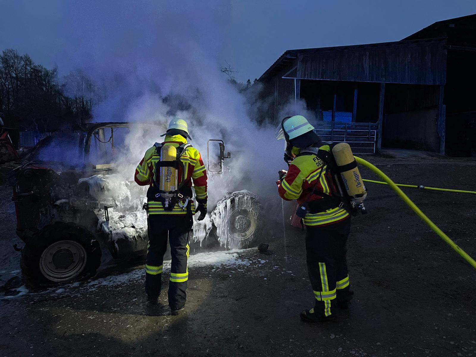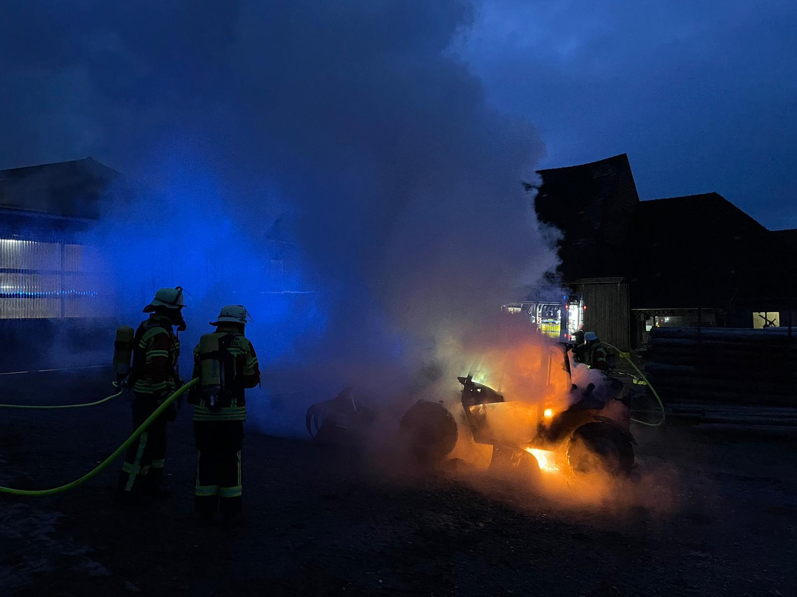 Am frühen Morgen des 16. Dezember 2024 wurde die Freiwillige Feuerwehr Deggenhausertal um 07:16 Uhr zu einem gemeldeten Fahrzeugbrand alarmiert. Auf einem landwirtschaftlichen Anwesen war ein Radlader in Brand geraten.