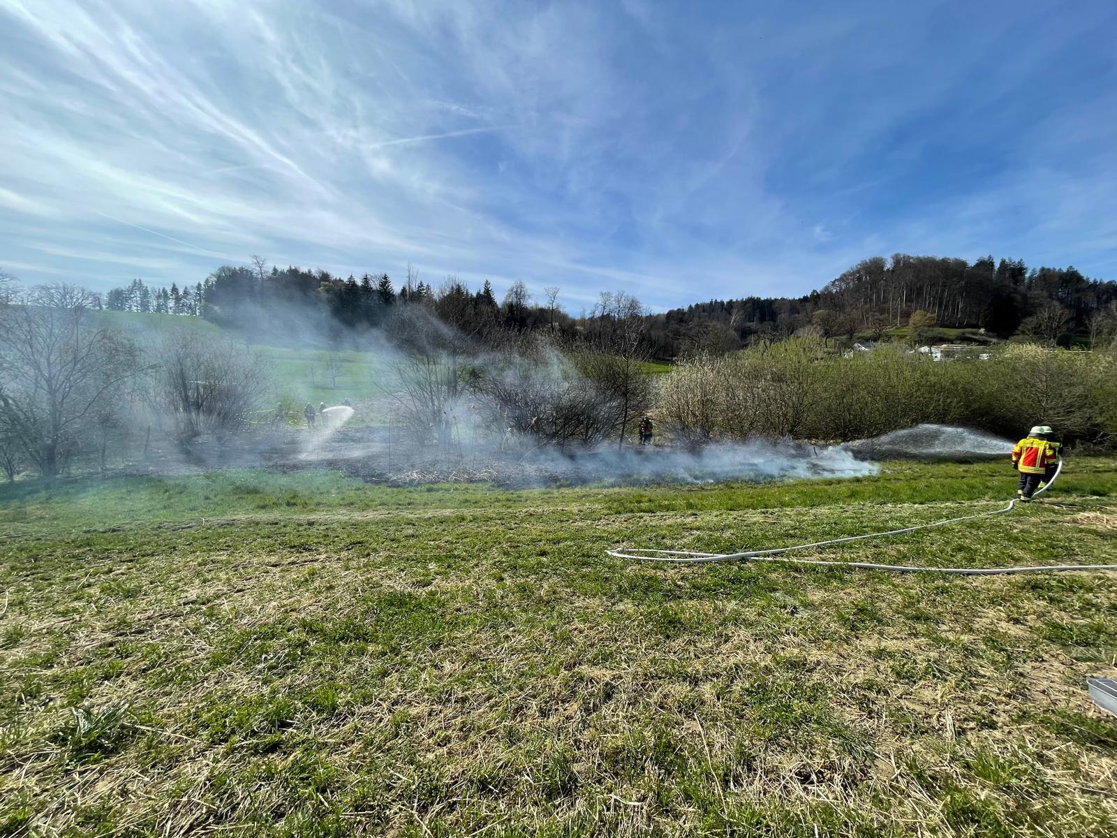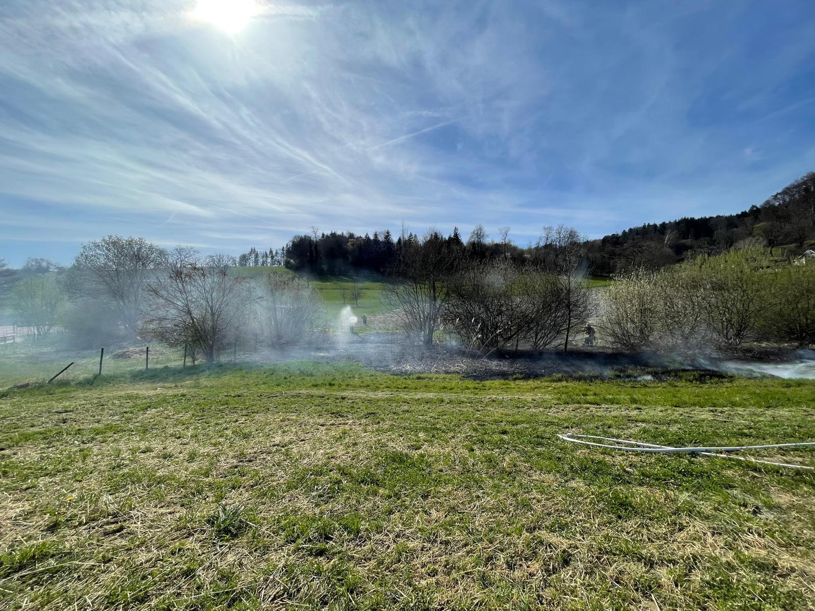 Mit zwei C-Rohren konnte das Feuer zügig unter Kontrolle gebracht und vollständig abgelöscht werden. Nachlöscharbeiten schlossen sich unmittelbar an. Die Feuerwehr war mit drei Fahrzeugen im Einsatz. Auch die HvO Deggenhausertal sowie das DRK Deggenhausertal waren vor Ort.