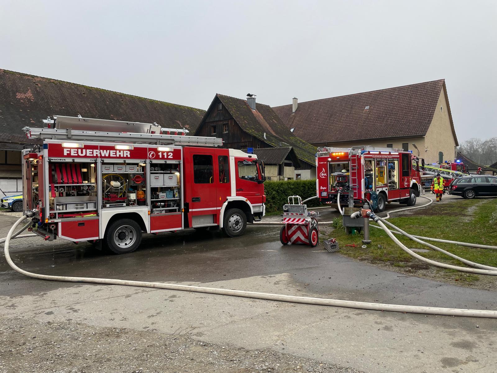 Am Freitagmittag wurde die Freiwillige Feuerwehr Deggenhausertal zur Unterstützung nach Bermatingen gerufen. Im Hofgut Wiggenweiler war es zu einem Schwelbrand gekommen; erste Meldungen sprachen von einem Brand im Bereich Kamin. Die Einsatzleitung in Bermatingen forderte zusätzliche Kräfte an, um das Objekt großflächig zu kontrollieren und Bauteile zu öffnen.