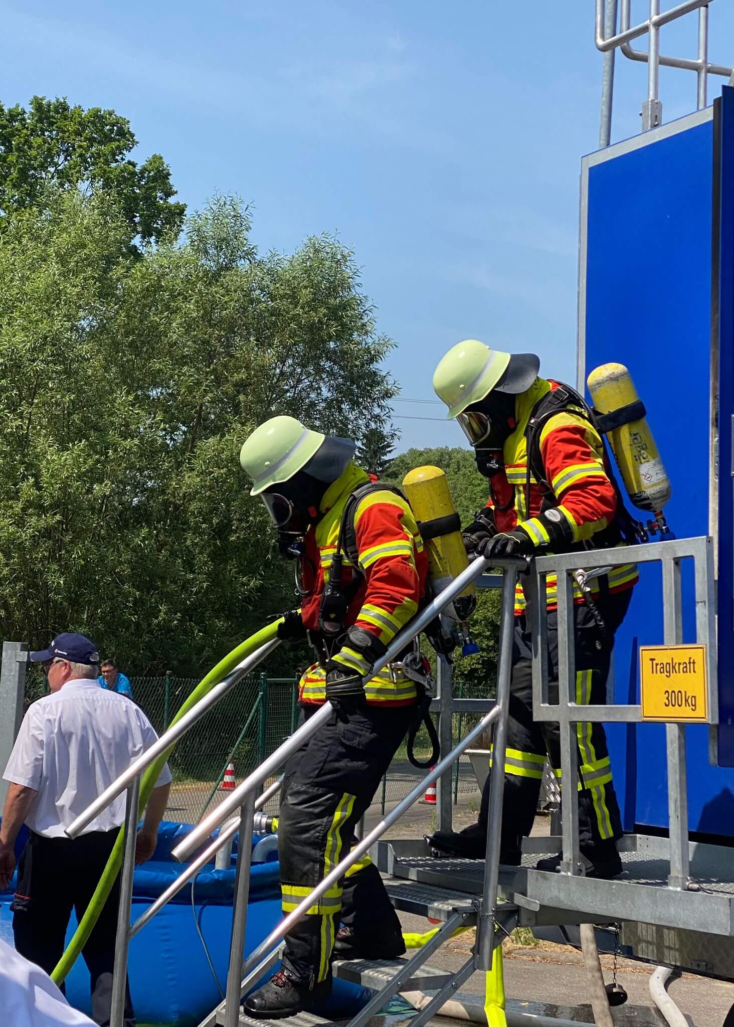 Ein weiteres Highlight des Tages war die Vorführung am Brandcontainer. Trotz der drückenden Hitze zeigten die mutigen Feuerwehrleute ihr Können und demonstrierten den Besuchern, wie sie in herausfordernden Brandsszenarien Leben retten und Brände effektiv bekämpfen. Der Brandcontainer simulierte realistische Feuerszenarien und bot den Feuerwehrleuten die Möglichkeit, ihre Fähigkeiten und Techniken zu präsentieren.
