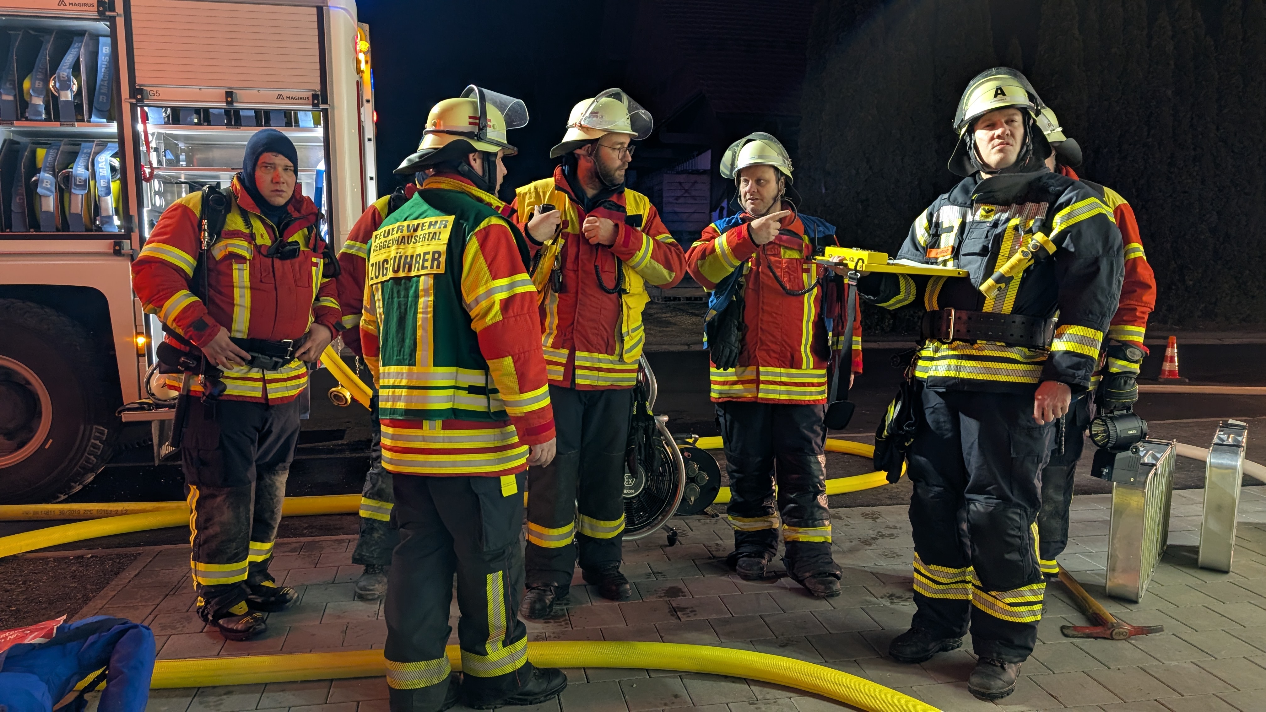 Am vergangenen Donnerstag, den 20.02.2025 führte die Freiwillige Feuerwehr Deggenhausertal eine Gesamtprobe in der neu errichteten D'Taler Lebenswelt der Bauunternehmen Strasser, Salem durch. Das Übungsszenario sah einen Fahrzeugbrand in der Tiefgarage vor. Zu Beginn der Übung quoll dichter Rauch aus der Einfahrt der Tiefgarage, was die simulierte Notfallsituation realistisch darstellte.