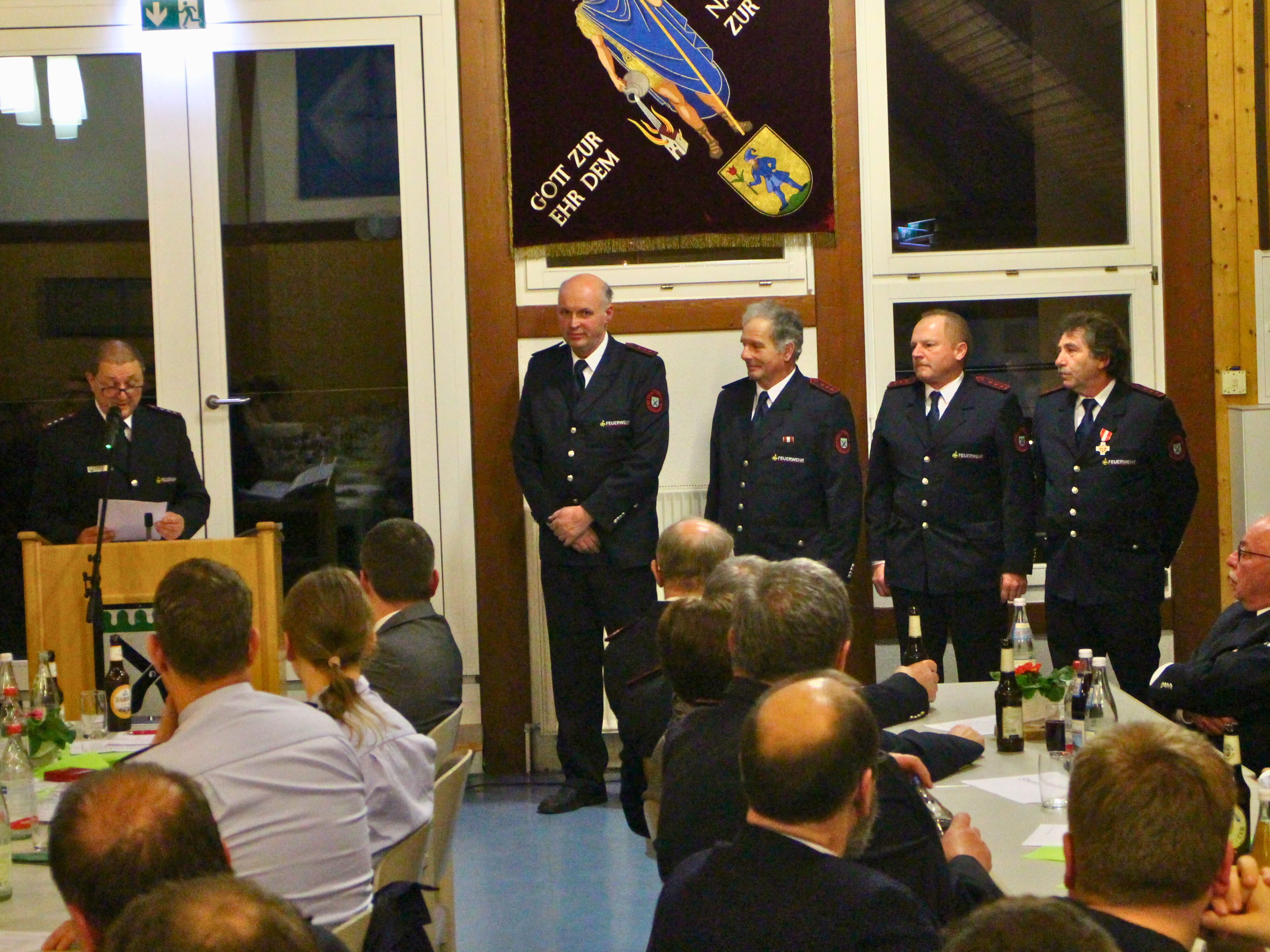 Karl-Heinz Bentele übernahm stellvertretend die Ehrungen des Kreisfeuerwehrverbandes. Ausgezeichnet mit dem Ehrenkreuz des Kreisfeuerwehrverbandes Bodenseekreis in Bronze wurden: