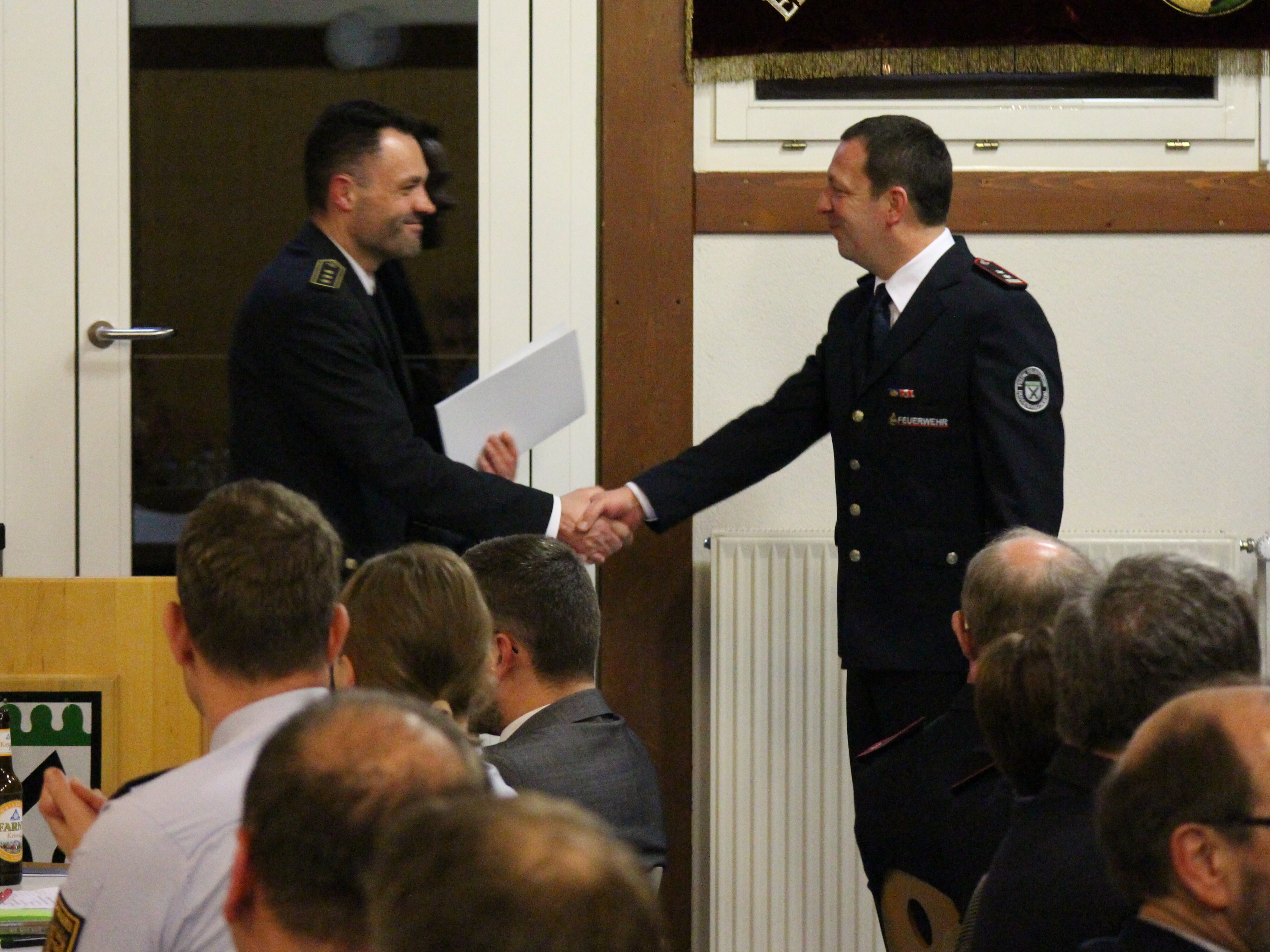 Zwei neue Kameraden, Stefan Drach und Ben Schäfer, wurden offiziell in die aktive Wehr aufgenommen.