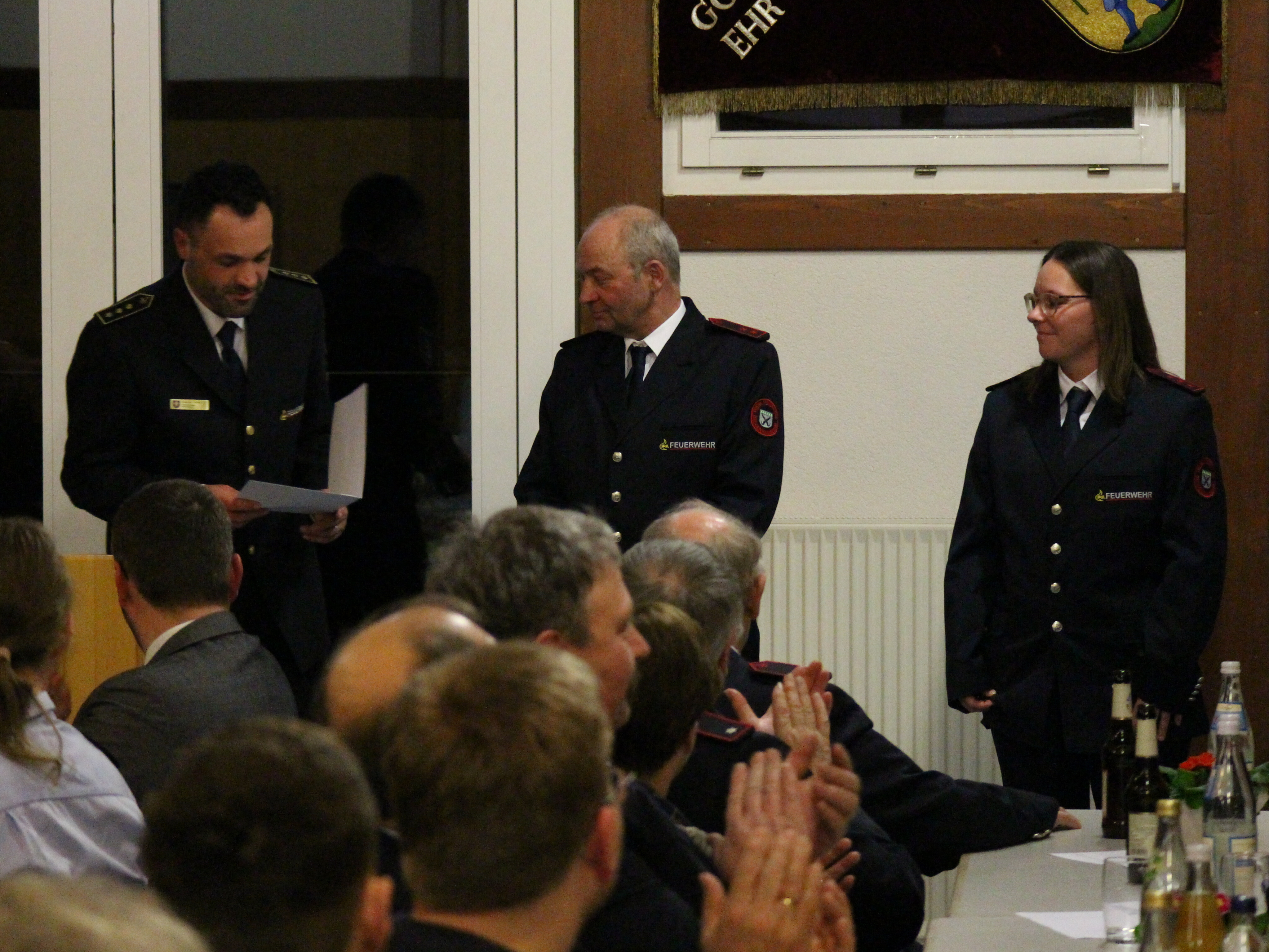 Der Tätigkeitsbericht des Schriftführers Manuel Haag bot einen umfassenden Rückblick auf das vergangene Jahr, das mit 122 Einsätzen ein Rekordjahr für die Feuerwehr darstellt. Besonders die Unwetterereignisse im Mai und Juni 2024 stellten die Einsatzkräfte vor große Herausforderungen, die jedoch dank der guten Zusammenarbeit und Ausbildung erfolgreich gemeistert wurden. Marcel Grunewald berichtete über die Aktivitäten der Jugendfeuerwehr, die mit großem Engagement am Feuerwehrleben teilnahm. Ehrenkommandant Ernst Mecking informierte über die Veranstaltungen der Alterskameraden. Kommandant Claudius Mecking hob in seinem Bericht die Bedeutung einer gut ausgebildeten Feuerwehr hervor, die insbesondere bei den Unwetterlagen deutlich wurde. Er lobte zudem die hervorragende Zusammenarbeit mit der Gemeinde.