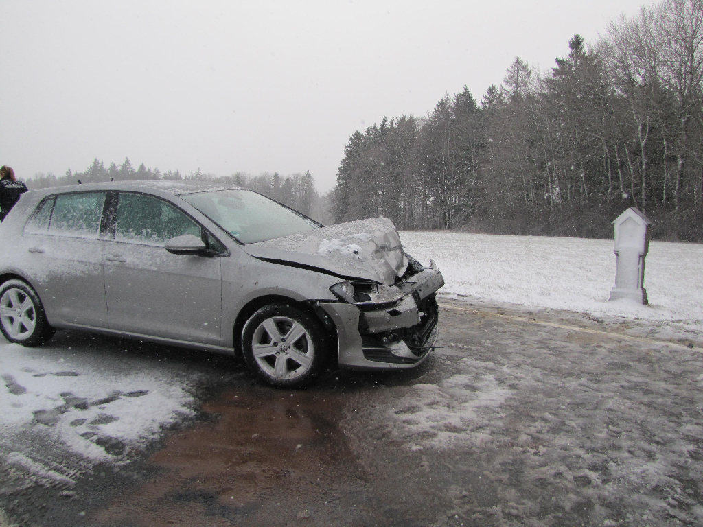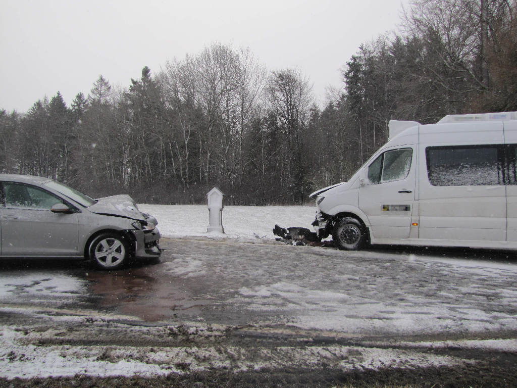 Die Freiwillige Feuerwehr Deggenhausertal wurde zu einem Verkehrsunfall zwischen einem PKW und LKW auf dem Höchsten alarmiert. Vor Ort stellte sich heraus, dass vermutlich aufgrund der winterlichen Verhältnisse ein PKW in einem Kleinbus gefahren war. Eine verletze Person wurde bereits vom Rettungsdienst betreut.