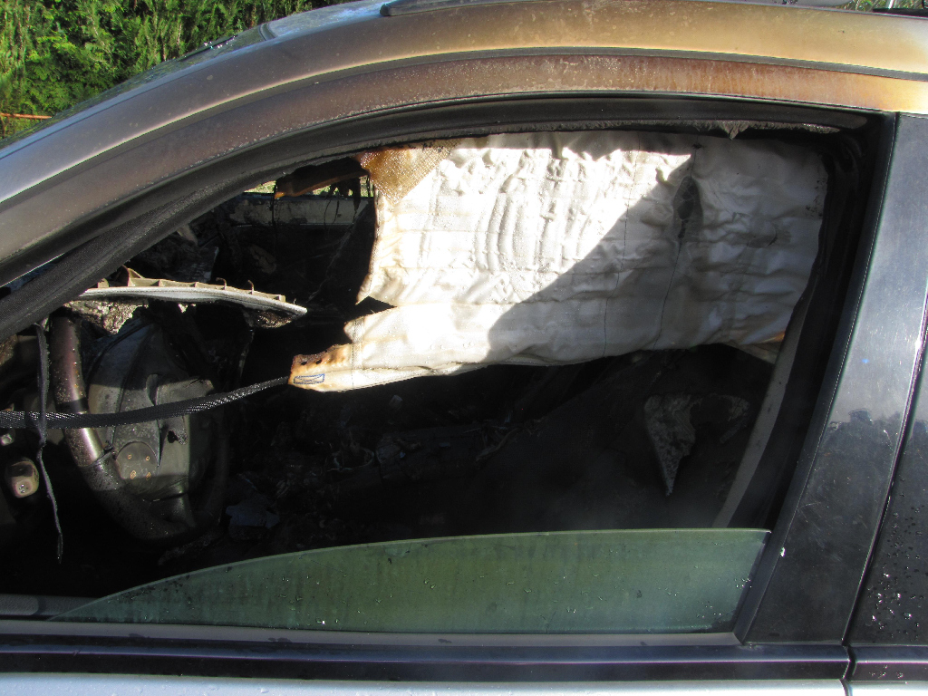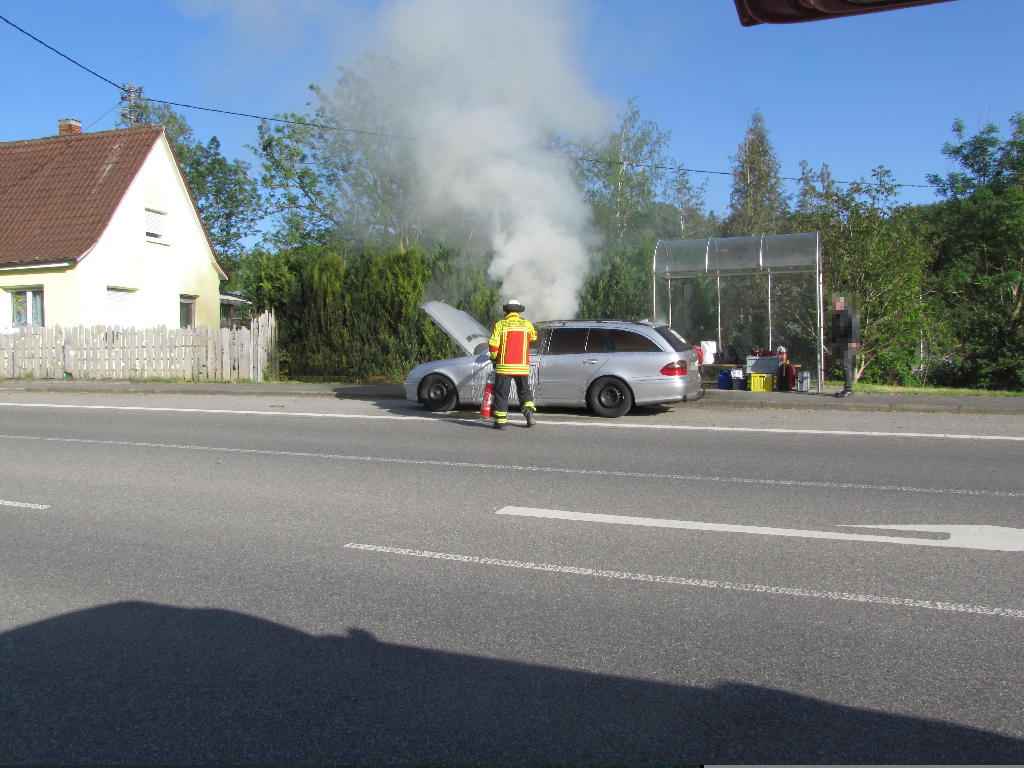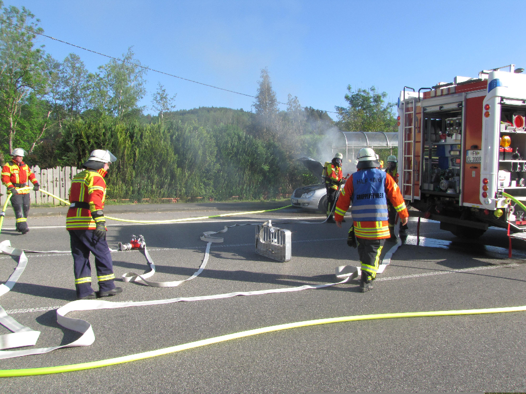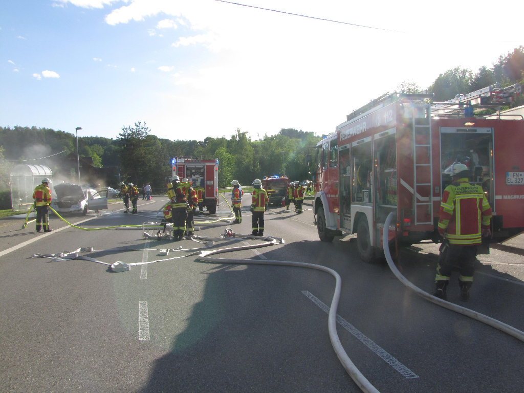 Beim Eintreffen der ersten Einsatzkräfte stand das Fahrzeug bereits in Vollbrand. Erste Löschversuche wurden mit einem High-Press-Löscher durchgeführt.
