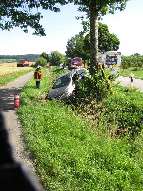 Vor Ort wurde die Fahrerin bis zum Eintreffen des Rettungsdienstes betreut. Außerdem wurde der Brandschutz sichergestellt und die Unfallstelle abgesichert.