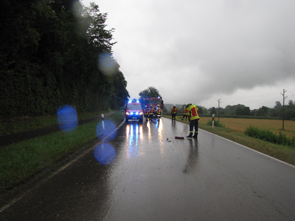 Die Freiwillige Feuerwehr Deggenhausertal wurde über die Polizei zur Reinigung der L204 nach einem Verkehrsunfall alarmiert.