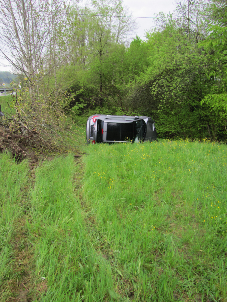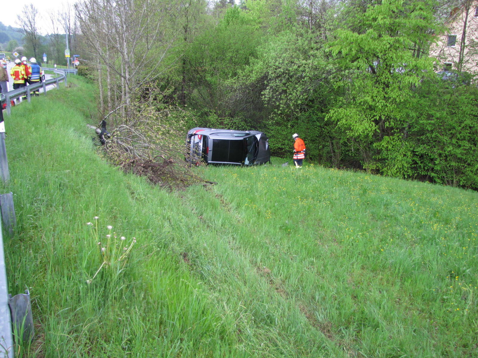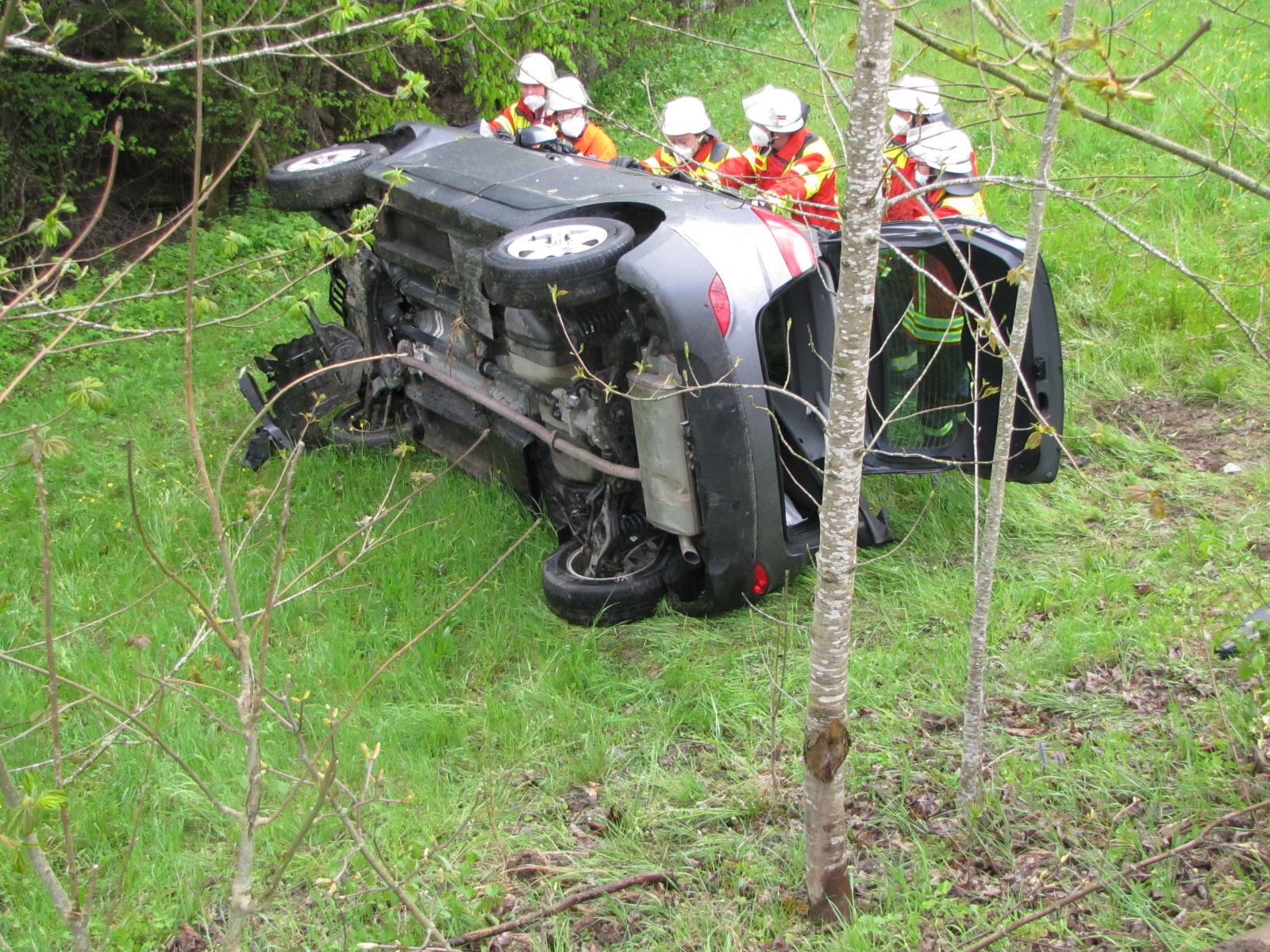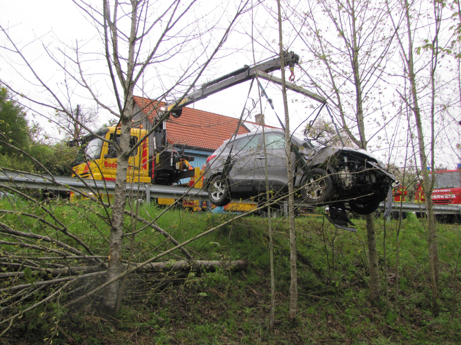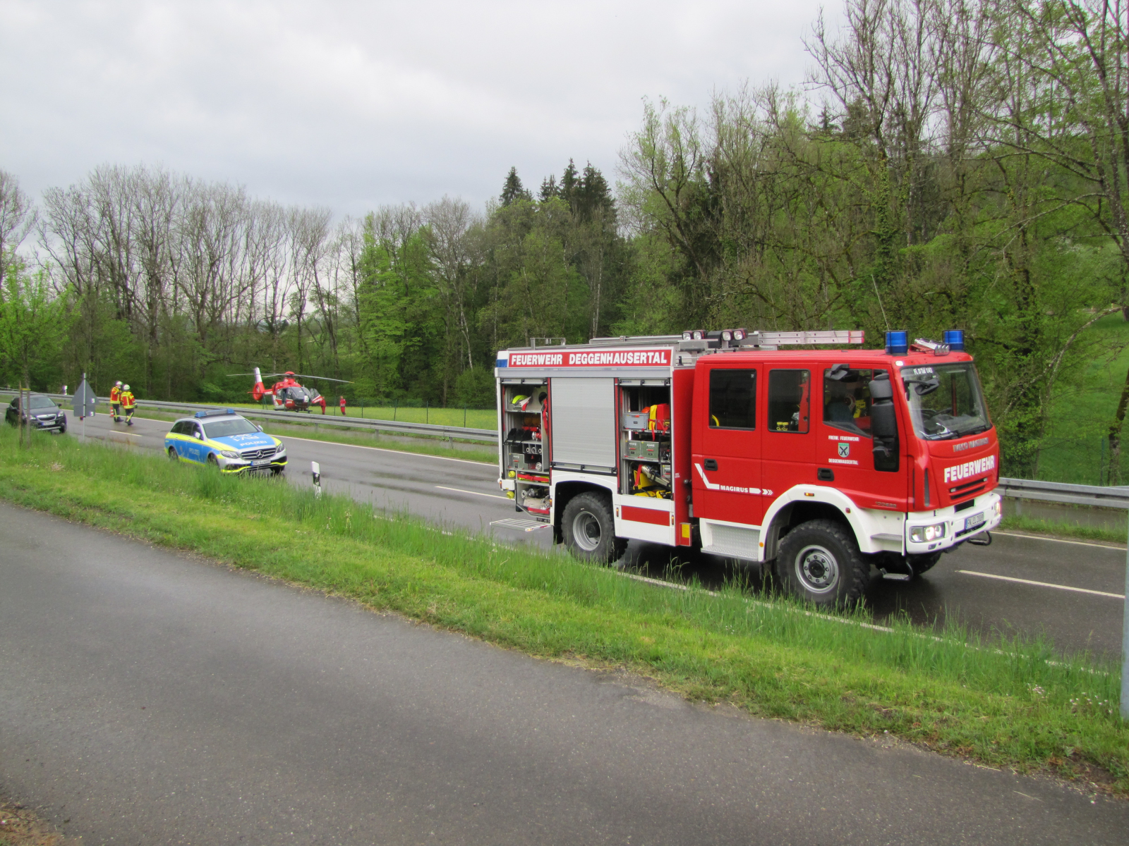 Vor Ort stellte sich heraus, dass ein Fahrzeug von der Fahrbahn abgekommen war und die Böschung Richtung Deggenhauser Aach herunter gefahren war. Dabei überschlug sich das Fahrzeug.