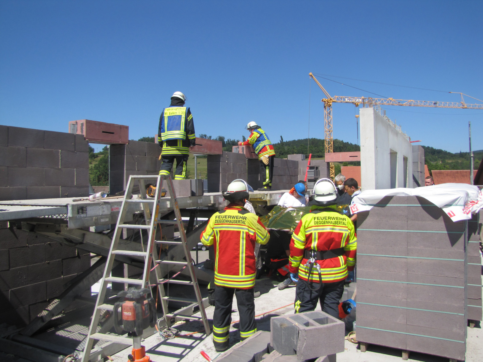 Auf einer Baustelle in Untersiggingen stürzte ein Arbeiter so schwer von einer Arbeitsplattform, dass wir bei der Rettung des Verunfallten unterstützen mussten.