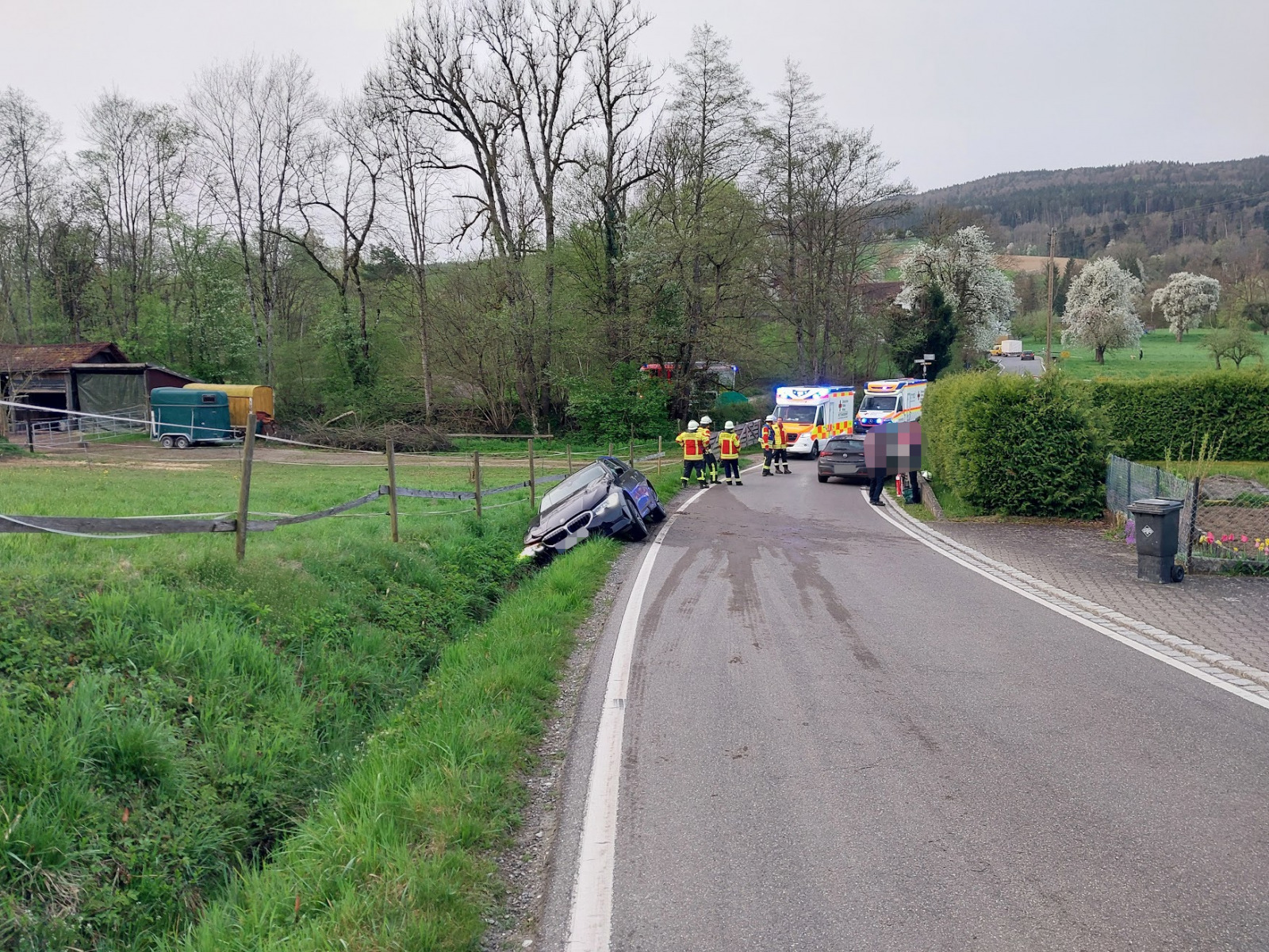 Bei Eintreffen der Feuerwehr befand sich ein PKW schräg auf der Seite im Straßengraben. Ein zweites Fahrzeug stand auf der Straße an einer kleinen Mauer. Alle Unfallbeteiligten hatten die Fahrzeuge bereits verlassen und wurden durch die Feuerwehr bis zum Eintreffen des Rettungsdienstes betreut.