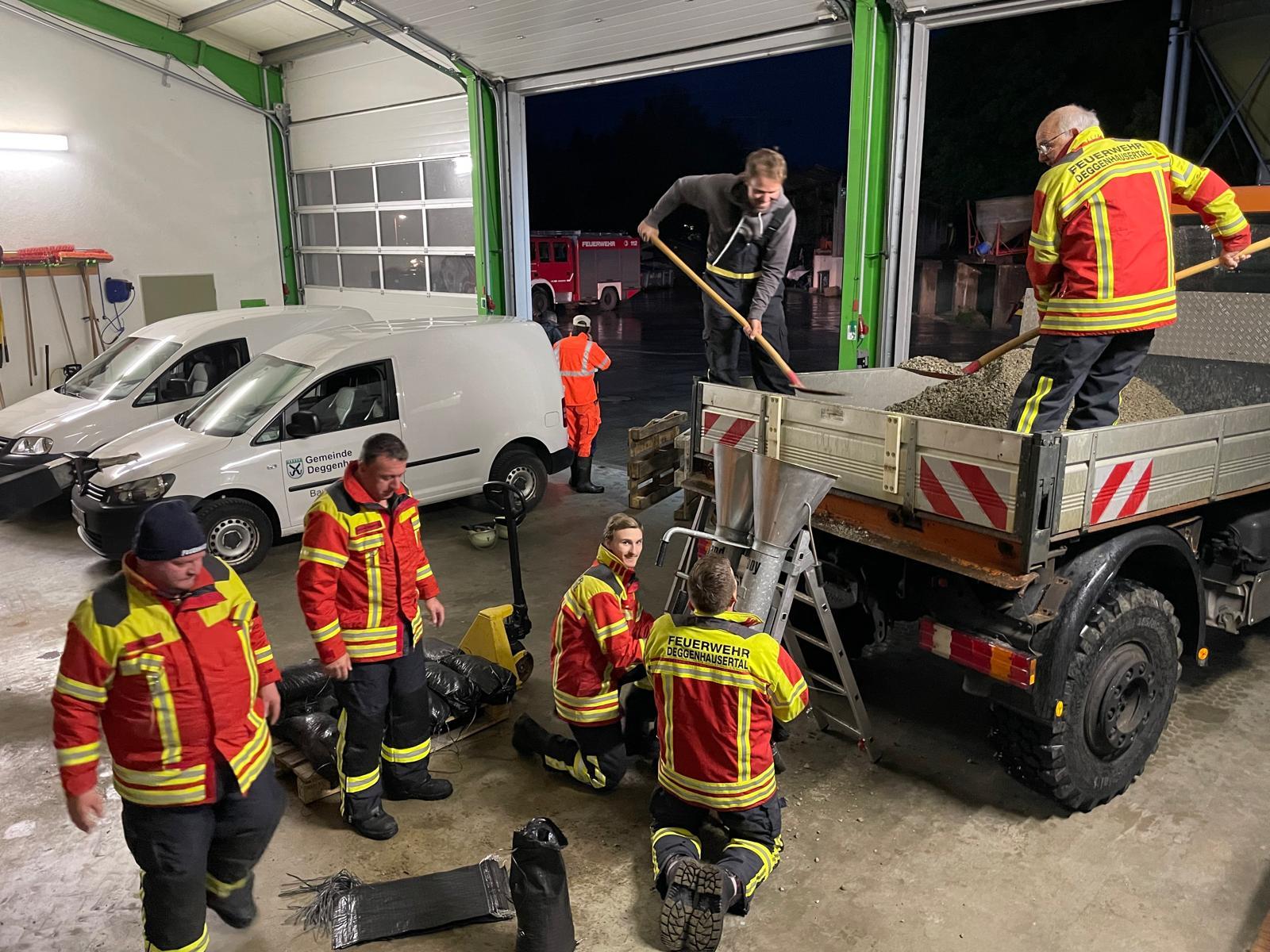 Gegen 20:43 Uhr wurde der erste Teil der Mannschaft alarmiert, um Sandsäcke zu befüllen und die ersten Einsatzstellen zu abzuarbeiten. Aufgrund der zunehmenden Anzahl von Einsätzen wurde im Laufe der Nacht eine weitere Mannschaft mobilisiert. Der Fokus lag dabei auf Schutzmaßnahmen gegen einlaufendes Wasser, um Gebäude und Infrastruktur zu sichern. Zusätzlich mussten mehrere Keller aufgrund des steigenden Wassers ausgepumpt werden.