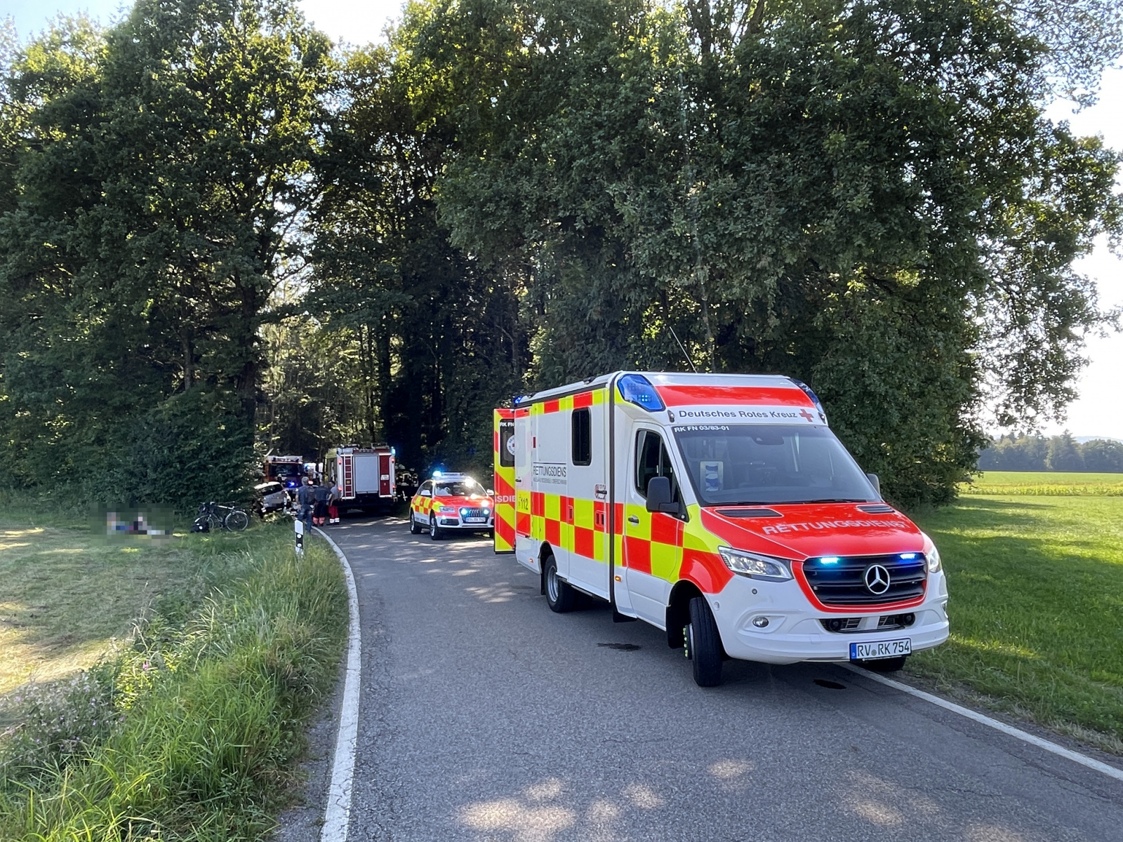 Im Straßenverlauf, am Beginn eines Waldstücks, war es zu einer tragischen Kollision zwischen einem PKW und zwei Radfahrern gekommen. Nach der Kollision geriet der PKW in den Straßengraben, wo er einen der Radfahrer einklemmte. Sofort leiteten, der ebenfalls alarmierte Rüstwagen der Freiwillige Feuerwehr Markdorf, gemeinsam mit dem Rettungsdienst und den anwesenden Notärzten eine Rettungsaktion ein. Die Seilwinde des Rüstwagens wurde eingesetzt, um das Fahrzeug zu sichern und den eingeklemmten Radfahrer zu befreien. Trotz aller Bemühungen konnte der Notarzt leider nur noch den Tod des Radfahrers feststellen.