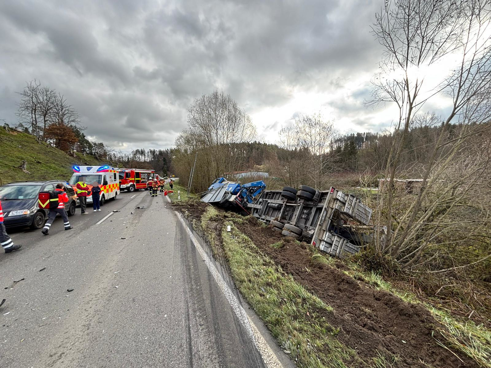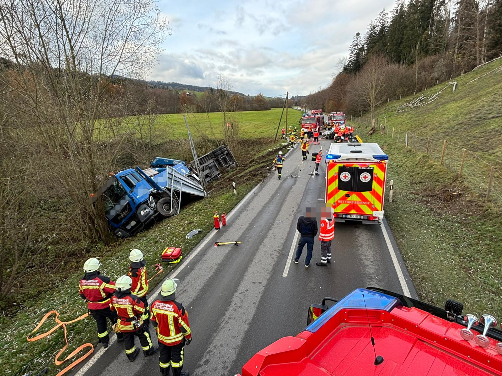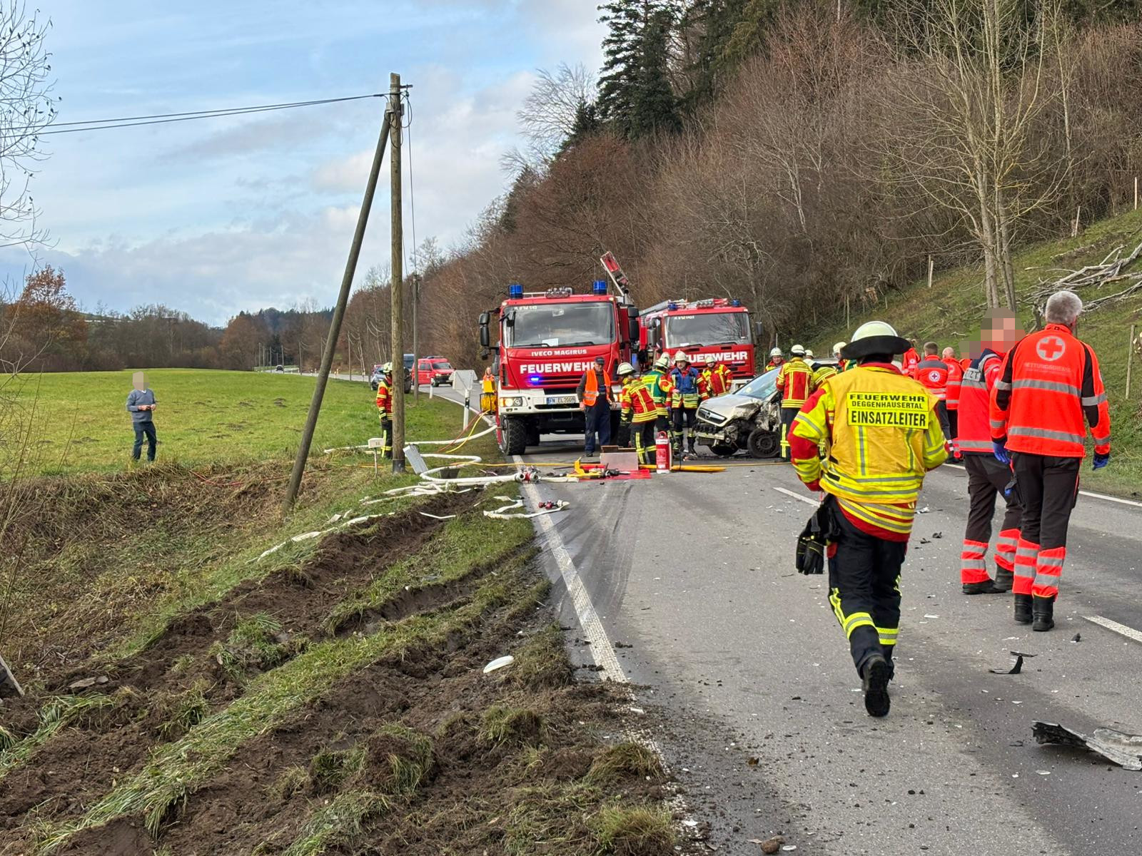 Am Dienstagvormittag gegen 11:47 Uhr wurde die Freiwillige Feuerwehr Deggenhausertal zu einem schweren Verkehrsunfall auf der L204 zwischen Fuchstobel und Urnau alarmiert. Ein Pkw war dort mit einem entgegenkommenden Lastwagengespann kollidiert. Durch den Aufprall wurde der Pkw-Fahrer in seinem Fahrzeug eingeklemmt.