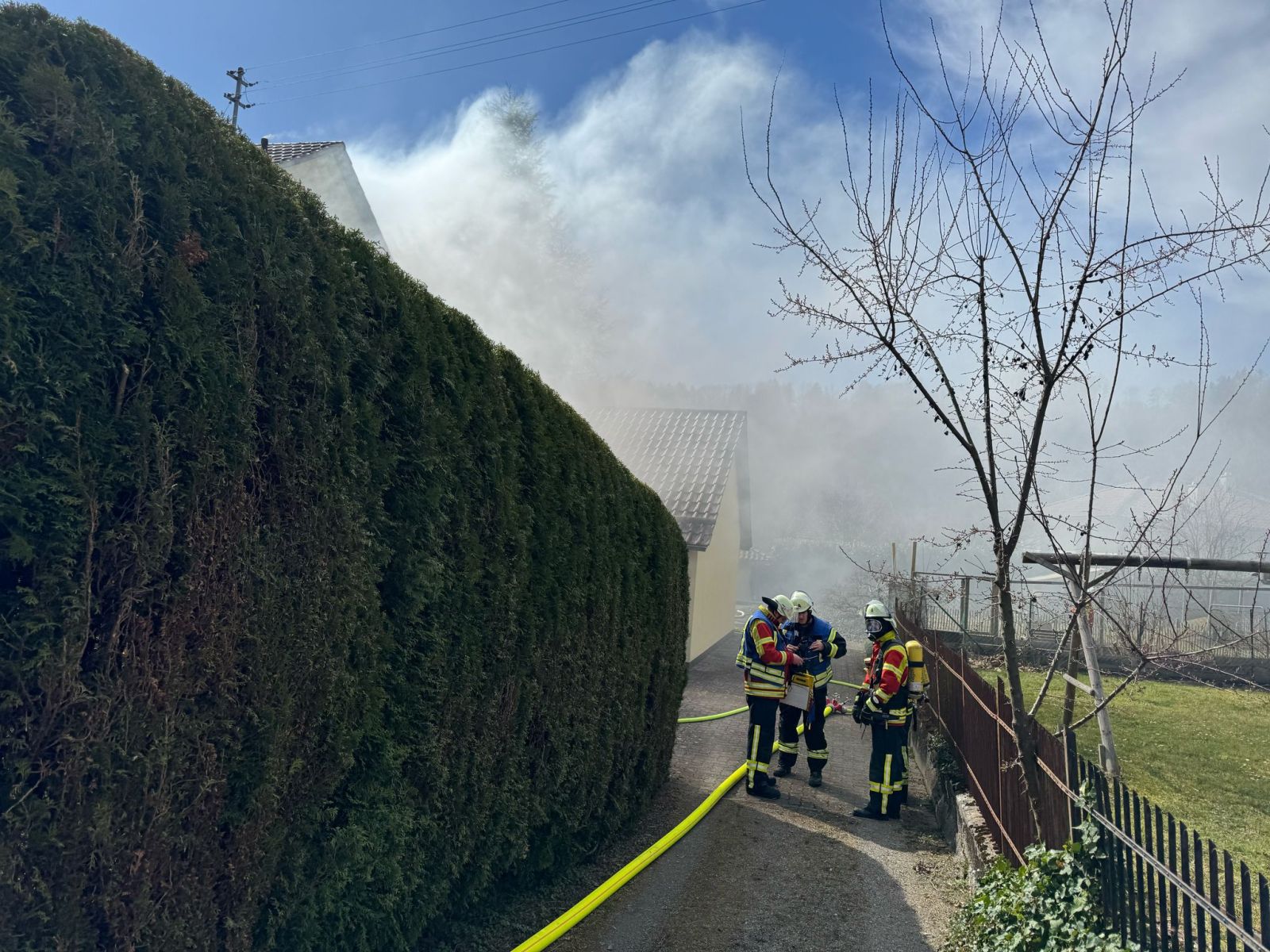 Am Samstag, den 22. März 2025, wurde die Freiwillige Feuerwehr Deggenhausertal um 13:20 Uhr zu einem Kellerbrand nach Deggenhausen alarmiert. Beim Eintreffen der ersten Einsatzkräfte drang bereits dichter Rauch aus den Lichtschächten des Gebäudes. Zwei Trupps unter Atemschutz begannen umgehend mit der Brandbekämpfung und konnten den Brandherd im Keller lokalisieren und zügig löschen.