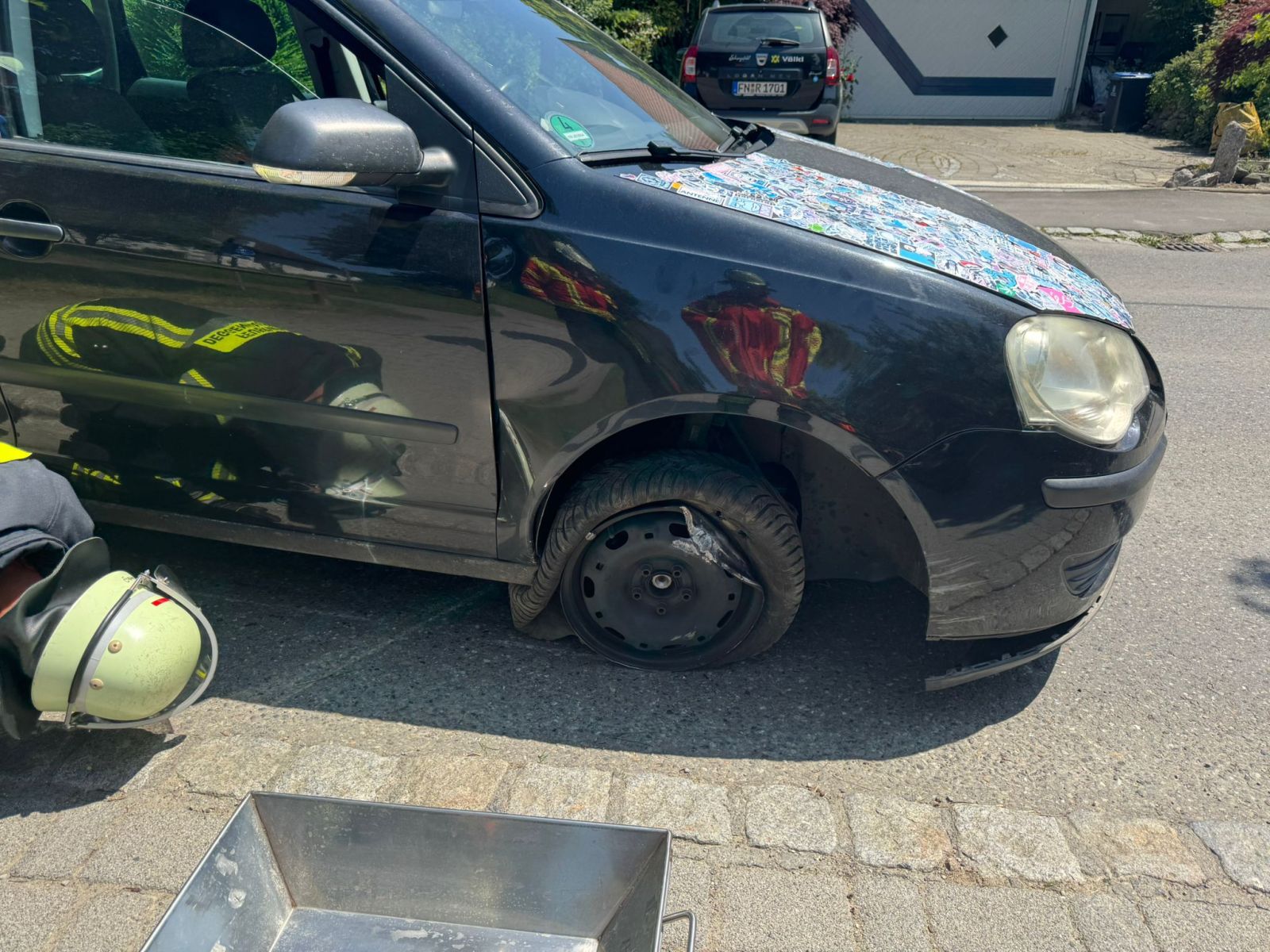 Ebenfalls am Dienstag, den17.06.2025 wurde die Freiwillige Feuerwehr Deggenhausertal zu einem Verkehrsunfall in die Badener Straße nach Wittenhofen alarmiert. Ein Pkw war dort alleinbeteiligt von der Fahrbahn abgekommen und gegen einen großen Stein geprallt.